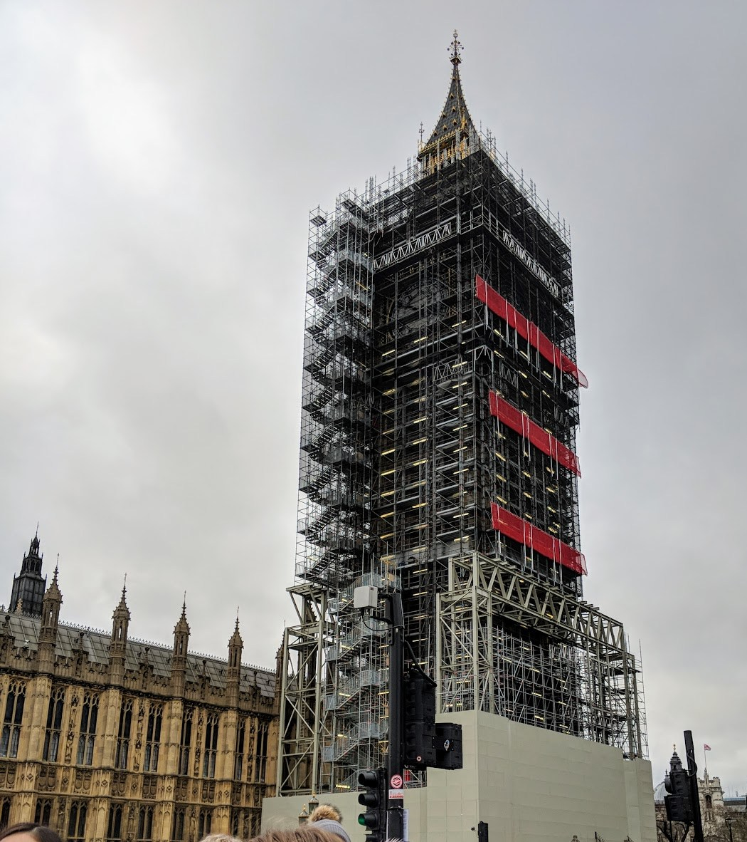 Big Ben under scaffolding