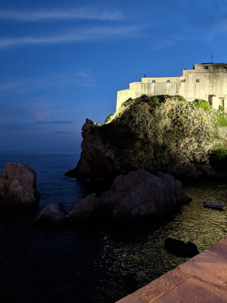 Fort Lovrijenac from Nautika Restaurant at night Dubrovnik Croatia Posted on December 14, 2018December 14, 2018 by livezeysliveeasy Fort Lovrijenac from Nautika Restaurant at night Dubrovnik Croatia